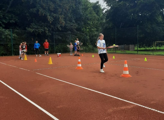 Tennisgrundlagen vermittelt und alle konnten bei verschiedenen, kleinen Spielen ihr